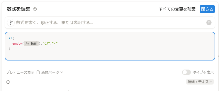 empty(prop("名前")),"〇","×"