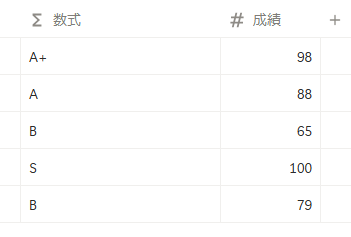 - 成績が100ならS、90~99ならA+、80~89以上ならA、79以下はB