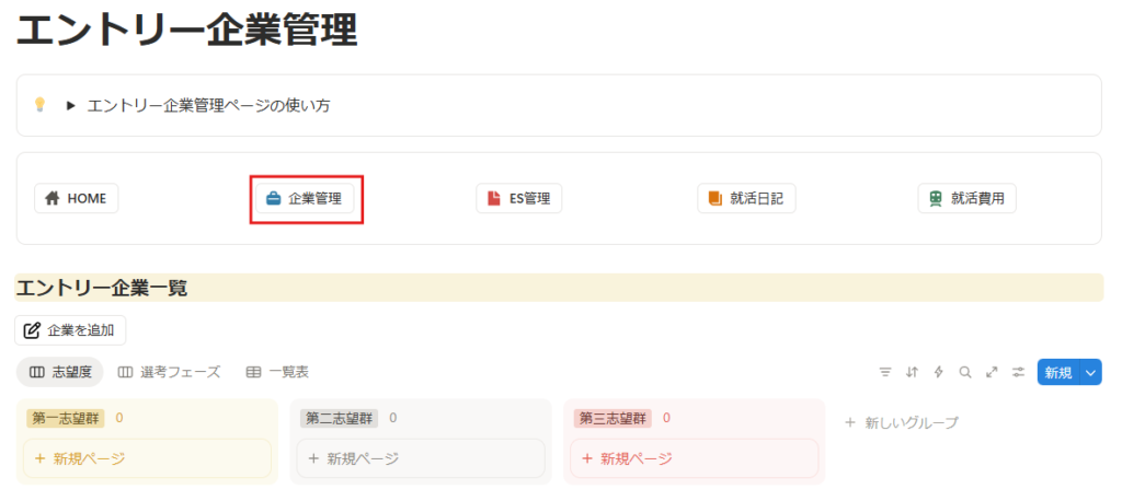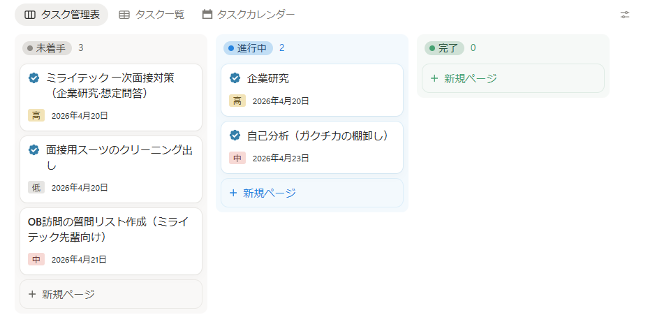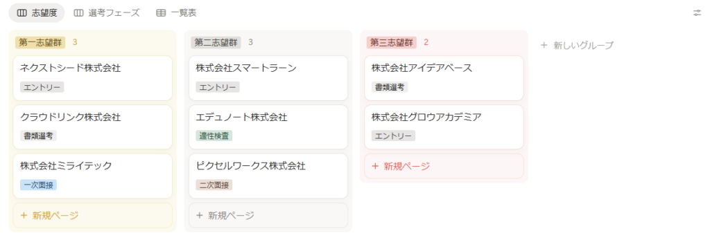 このSTEP5まで完了すれば、Notion就活管理のベースは完成!