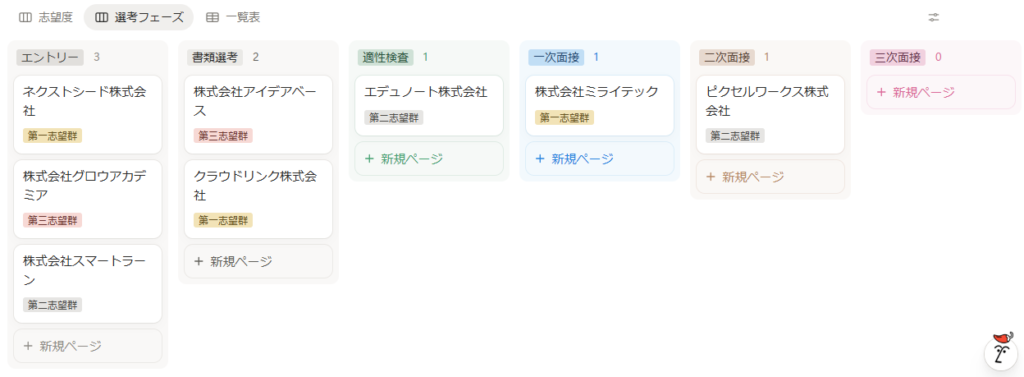 こちらは選考フェーズごとのビュー↓