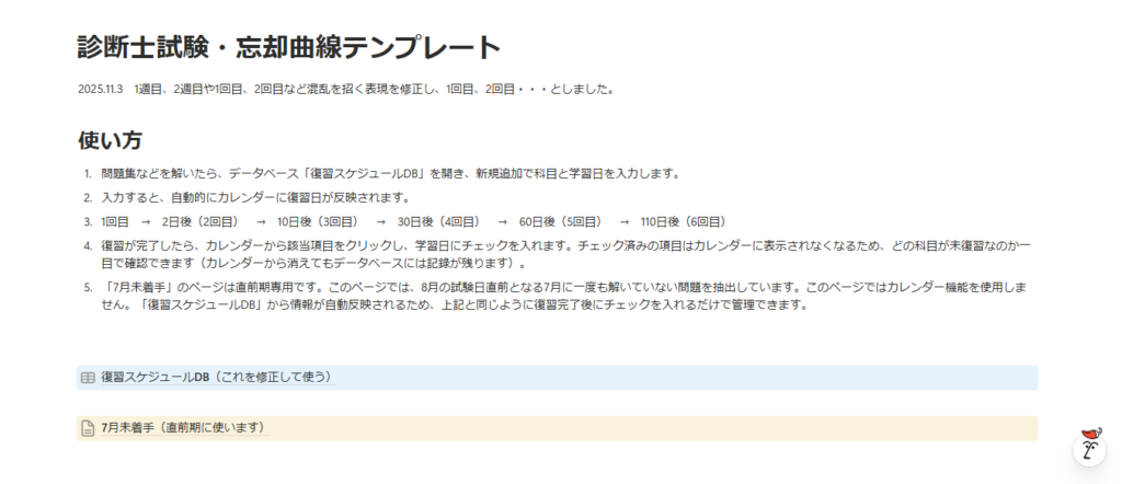 - 学んだことをNotion上で整理し、復習計画を立てたい人。
