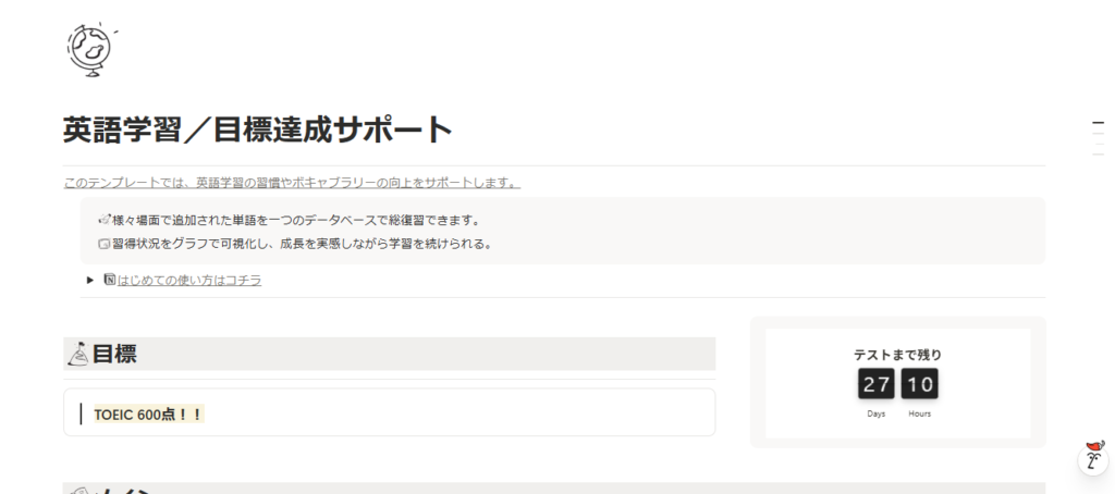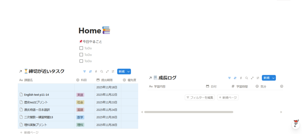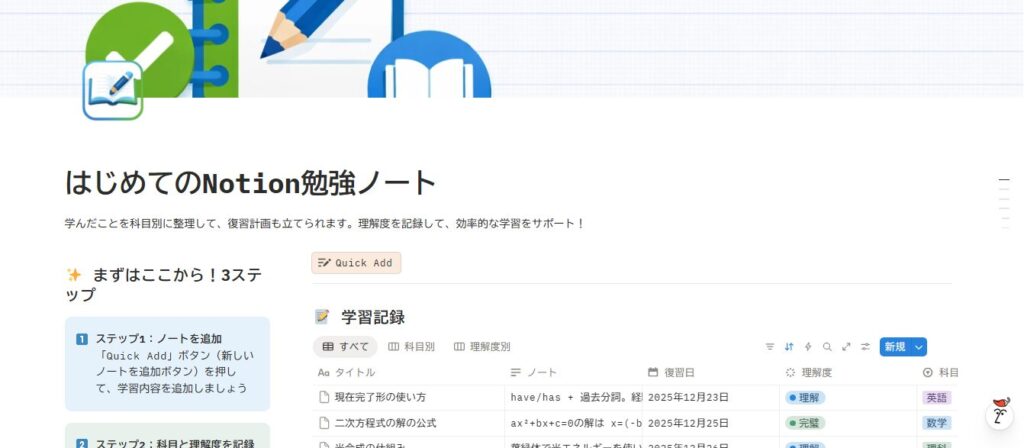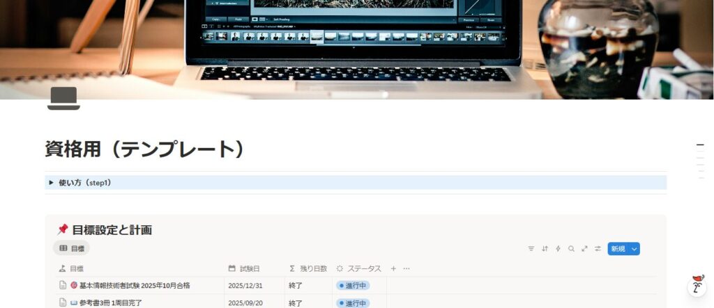 こんな人に向いています:機能が多いテンプレは苦手。まずはシンプルに勉強管理を始めたい人。