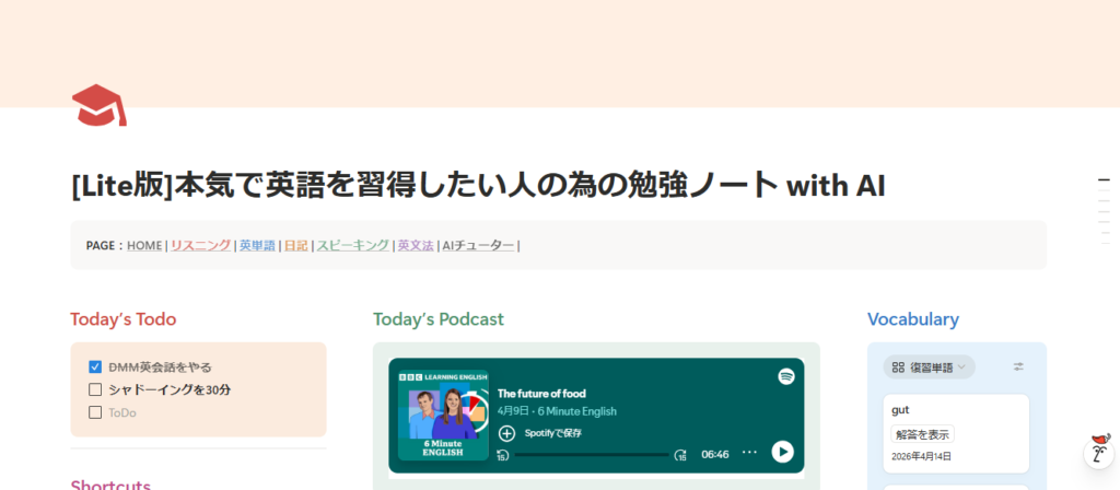 ⑥ [Lite版]本気で英語を習得したい人の為の勉強ノート with AI(クリノ)