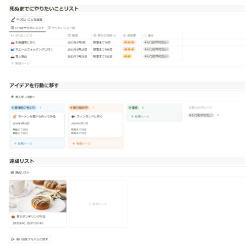 Notionの日記は、単なる記録にとどまらず、他のページやタスクと連携させることで「成長のためのツール」として活用できます。たとえば、以下のような使い方が可能です。