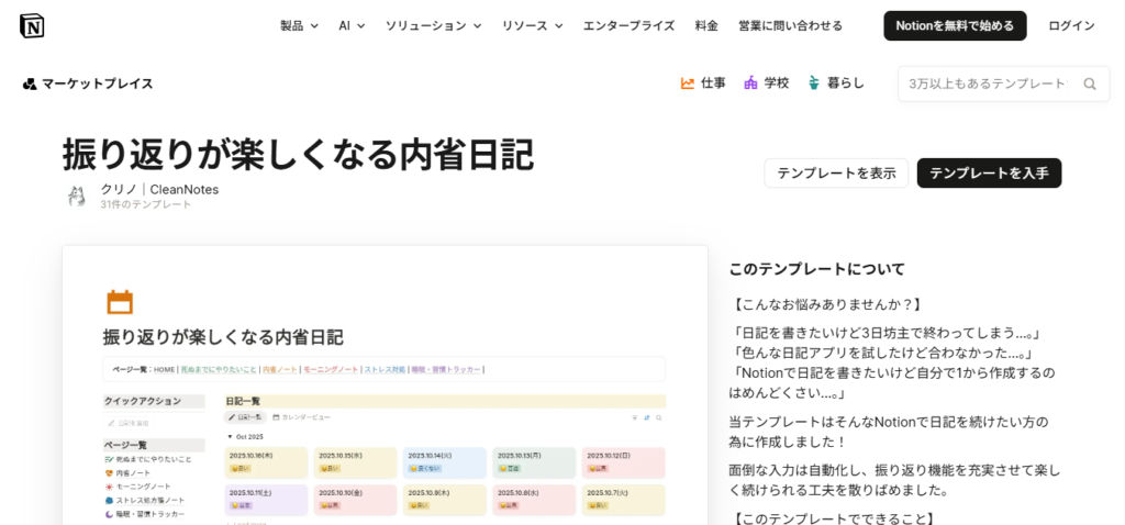 「Notionで日記をつけたいけど、自分で作るのは面倒…」