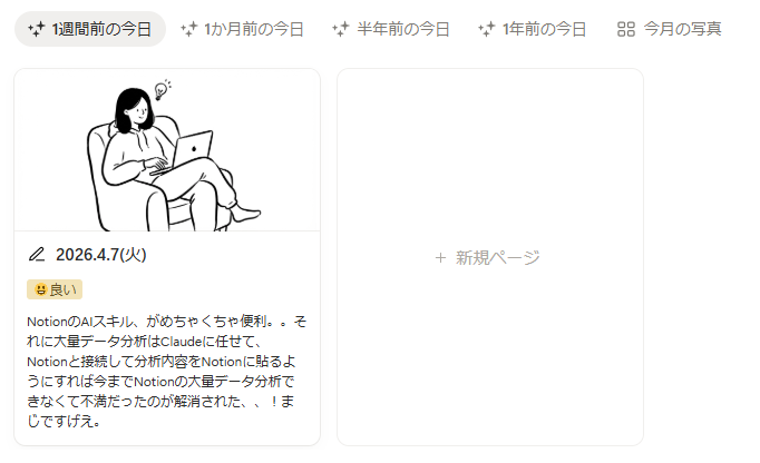 Notionはデータベース機能を活用することで、過去の日記を簡単に振り返ることができるのが大きなメリットです。