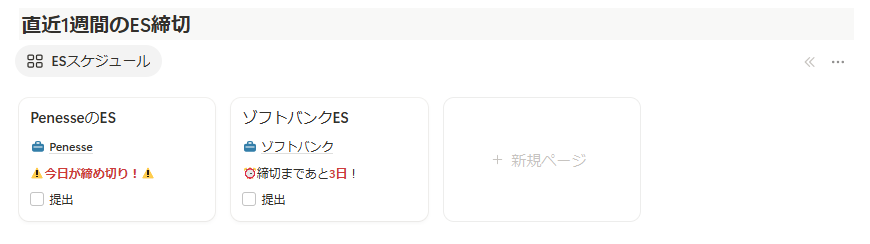 Notionなら、どの企業のESが未提出か、締切はいつか、すぐに把握できます。