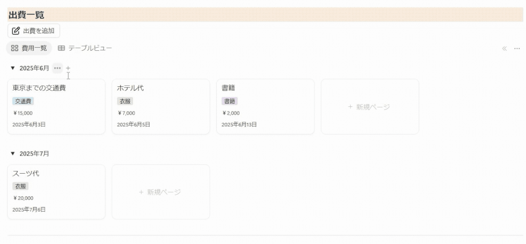 交通費や書類の印刷代など、意外と見落としがちな就活関連の出費もNotionでしっかり記録しましょう。