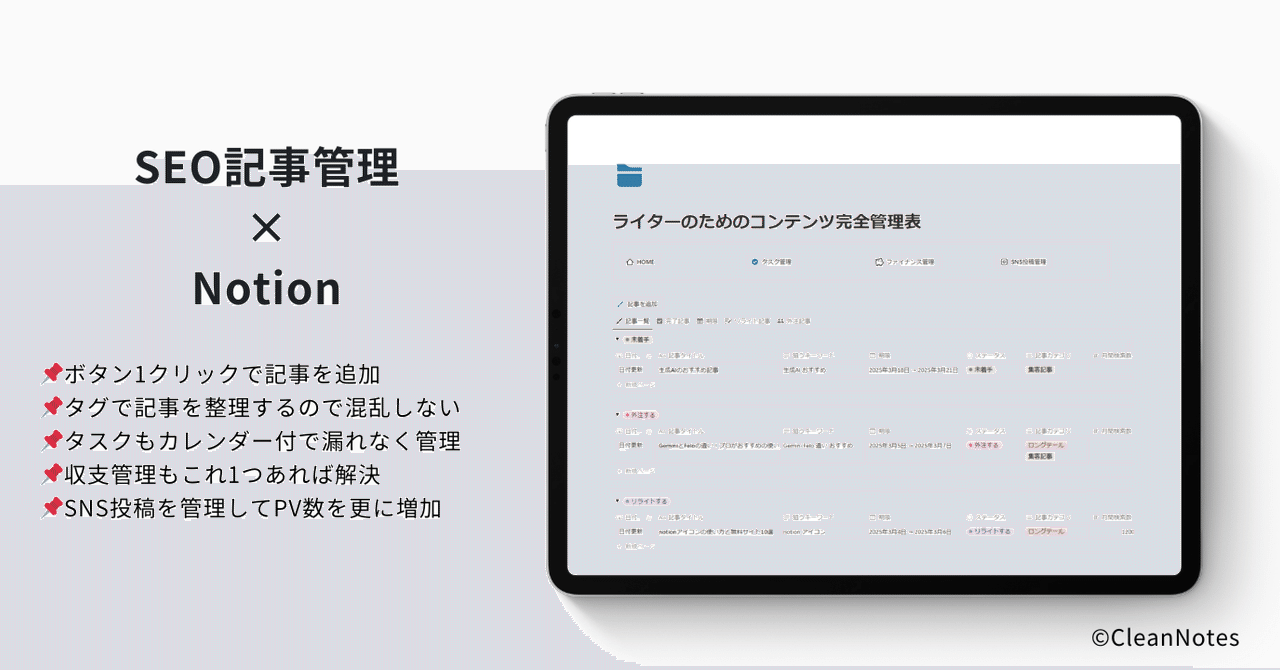 そこで今回は、Notionテンプレートクリエイターである私CleanNotesが試行錯誤しながら作り上げた 人気のオリジナルNotionテンプレート15選 を一挙公開します。